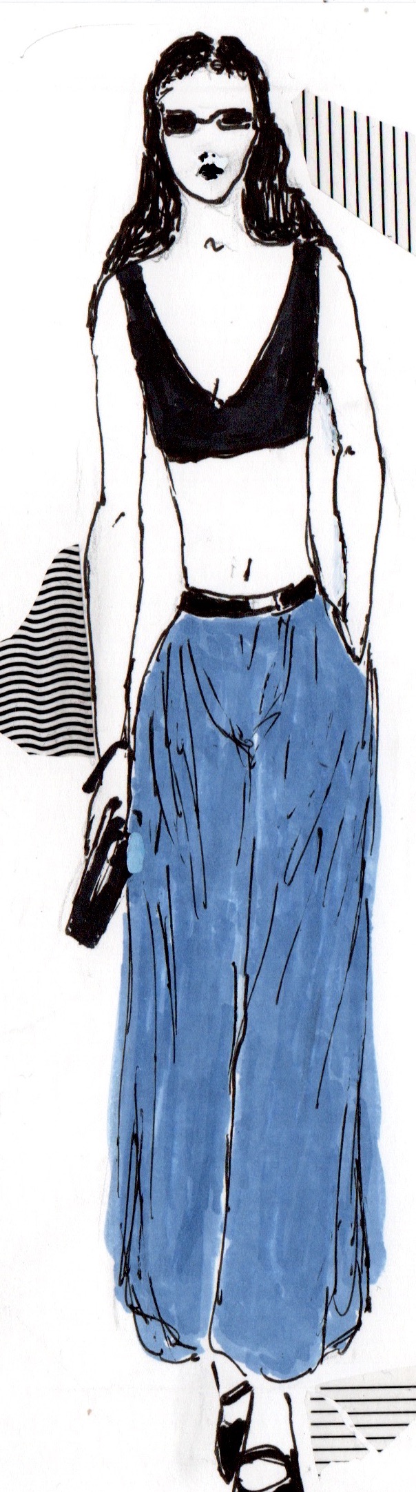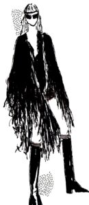 tramonta mai o nel rassicurante e amato recupero di certi must degli anni 70: pantaloni che si allargano a dismisura in fondo, poncho, frange, attillatissimi gilet,